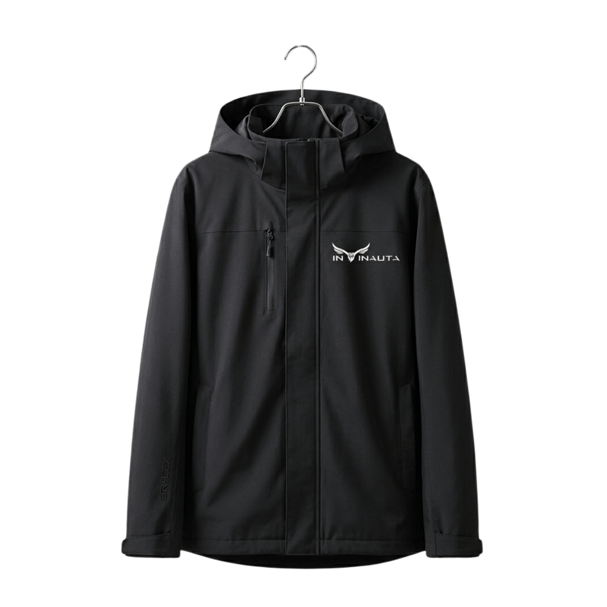 A minimalist hooded jacket with clean Intinauta branding and an everyday technical look.